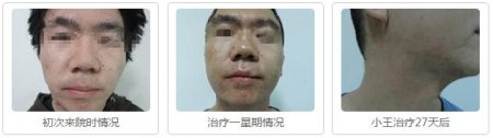 李先生是一位较为严重的痤疮患者,初次应诊时,面部呈现出面部毛孔粗大,油腻,丘疹红斑密集分布,并有痘印的痕迹。经肤康皮肤病医院医师运用"中医纳米平衡理疗"进行治疗一段时间后,逐渐取得非常好的治疗效果。面部现已痊愈,未见复发。