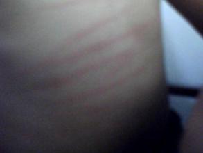 1、人工荨麻疹(皮肤划痕荨麻疹):患者在搔抓后,或在紧束的腰带、袜带等局部起风团,瘙痒。
